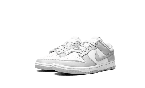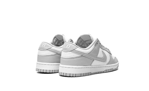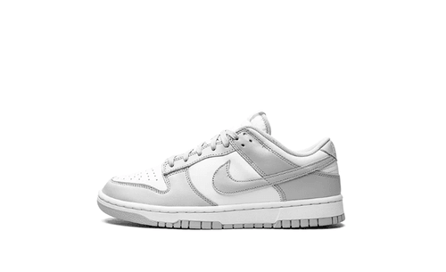 La Nike Dunk Low Grey Fog affiche l'habituelle empeigne en cuir blanc, relevée d'empiècements en cuir gris clair. On retrouve les coutures apparentes pour un effet rétro réussi. Le jeu de couleurs se poursuit jusque sur les semelles de la silhouette et un branding NIKE sur la languette complète le tout.