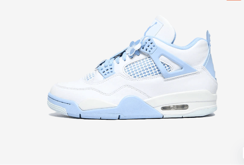 La Air Jordan 4 Retro Forget Me Not se caractérise par une confection en cuir blanc immaculé, accompagnée de détails bleu ciel présents sur les œillets, les logos et la semelle. Des fleurs amovibles fixées aux lacets subliment la paire et ajoutent une touche sophistiquée à ce design emblématique.